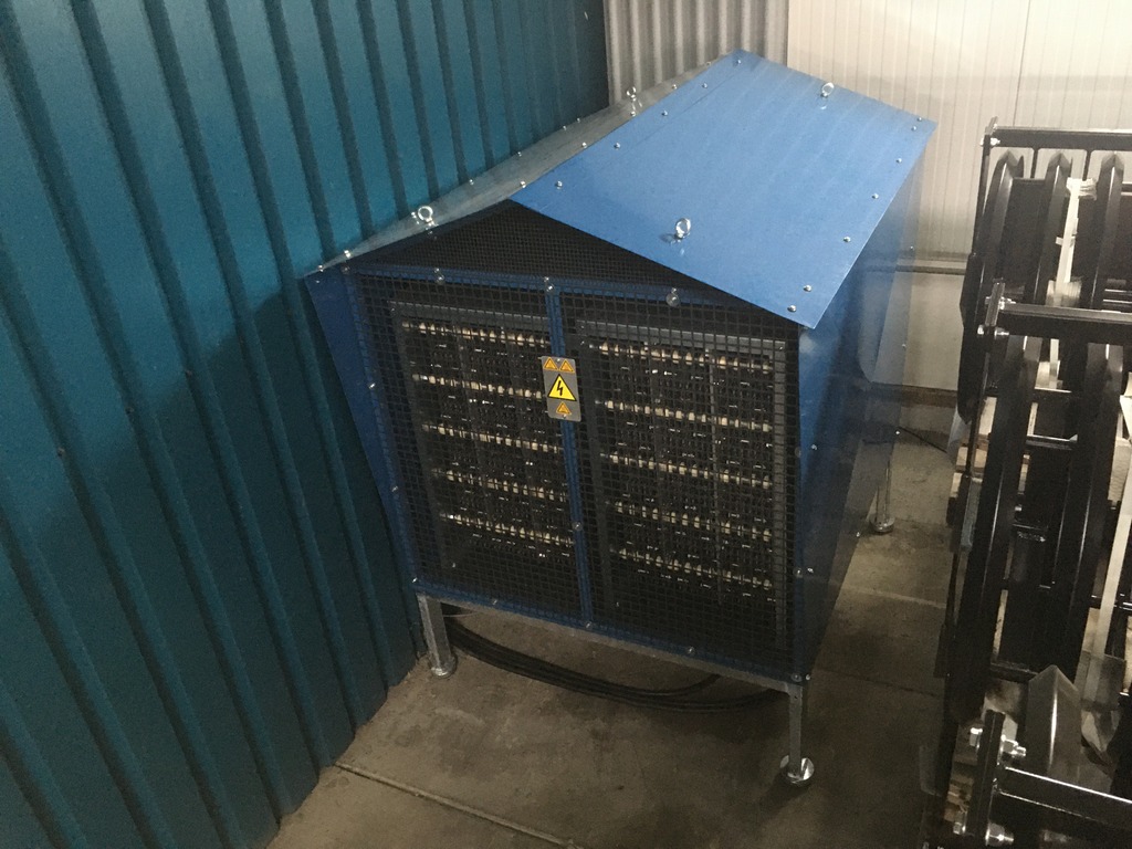 Het vermogen wordt via lastweerstanden afgevoerd en deze worden d.m.v ventilatoren gekoeld.
