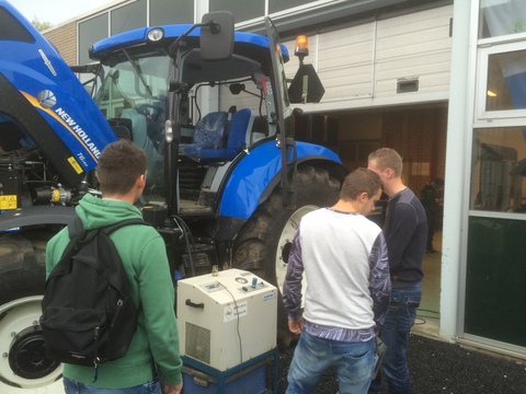 Studenten van CAH Vilentum in Dronten maken een vermogenstest met brandstofverbruiksmeting.