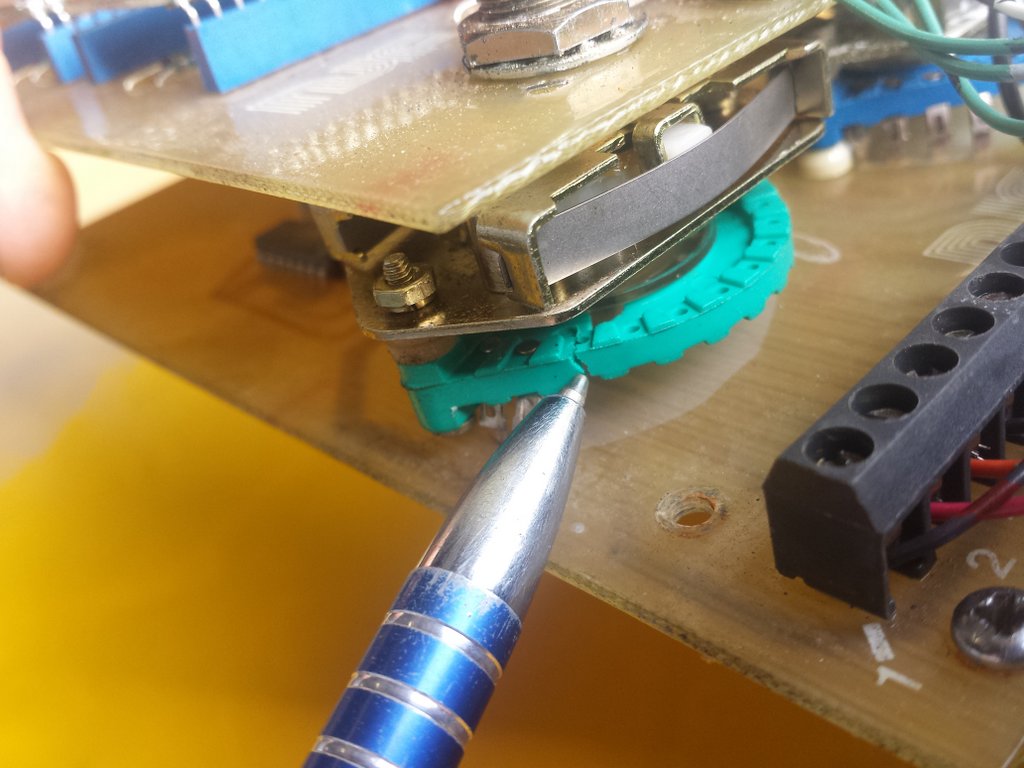 Doordat de fabrikant geen onderdelen meer maakt voor deze machines hebben we zelf onderdelen zoals de grote Stappen-potmeter in Engeland laten maken bij een externe leverancier.